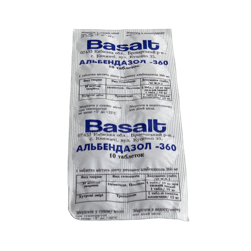Альбендазол-500 таблетки №10 (антигельмінтний засіб) Базальт