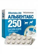 0,8 г препарату (одна таблетка) містить діючу речовину: альбендазол ― 250 мг; допоміжні речовини ― до 0,8 г.