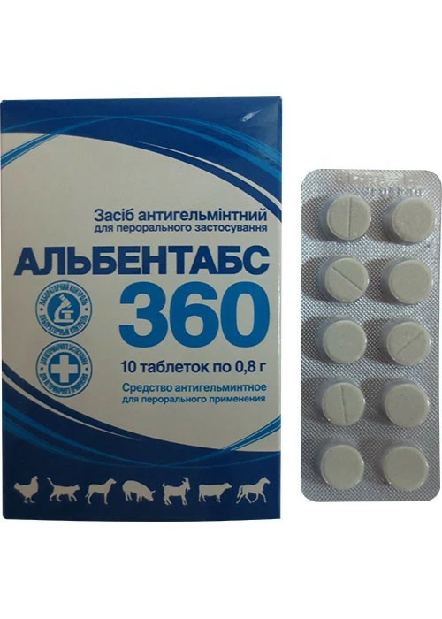 1 г препарату (дна таблетка) містить: діюча речовина альбендазол - 360 мг; та допоміжні речовини.