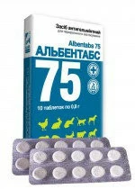 Таблетка (0,8 г) містить діючу речовину: альбендазол — 75 мг.