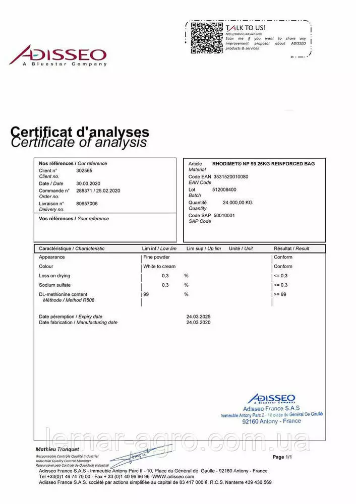 Кормовой DL-метионин Rhodimet