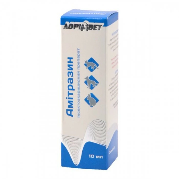 АМИТРАЗИН-ФОРТЕ Препарат ефективний проти резистентних популяцій кліщів. Він проникає і депонується в епідермісі, волосяних цибулинах, жирових і потових залозах. Надає протизапальну, бактерицидну і пом'якшувальну дію.