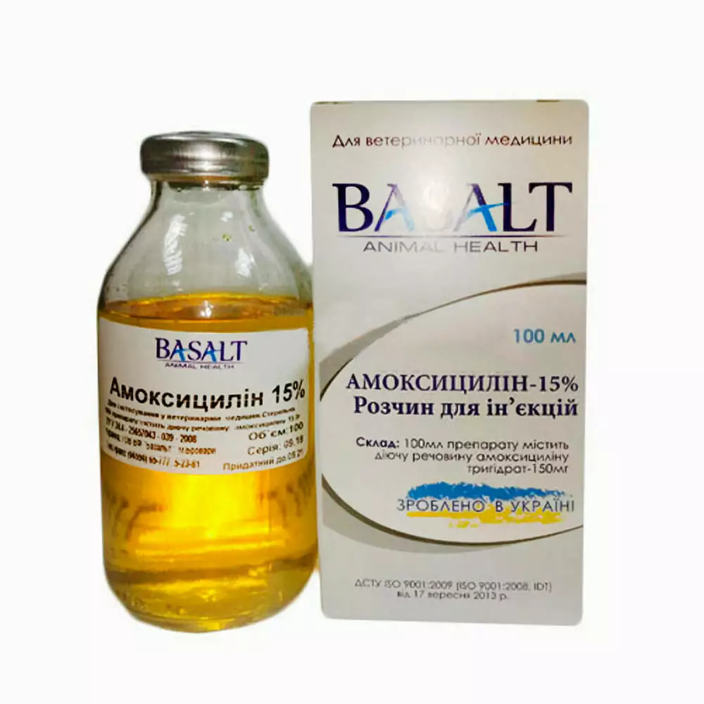 Амоксицилін 15% розчин для ін'єкцій 100 мл Базальт
