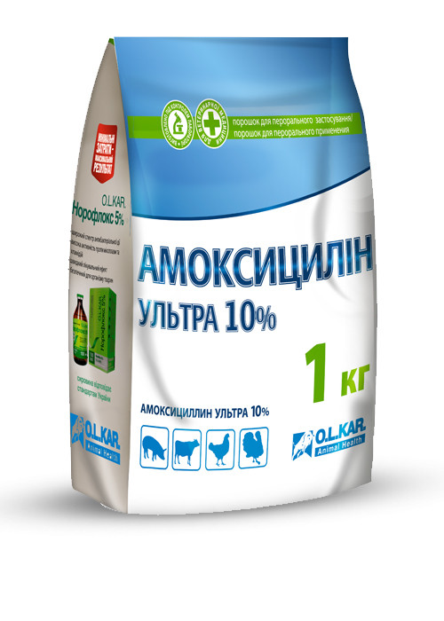 Свиням, молодняку великої та дрібної рогатої худоби в дозі 10-20 мг амоксициліну тригідрату на 1 кг живої ваги (1,7- 2г препарату на 100 кг маси тіла) з кормом або 120-150 г препарату на 1000 л питної води протягом 3-5 діб.