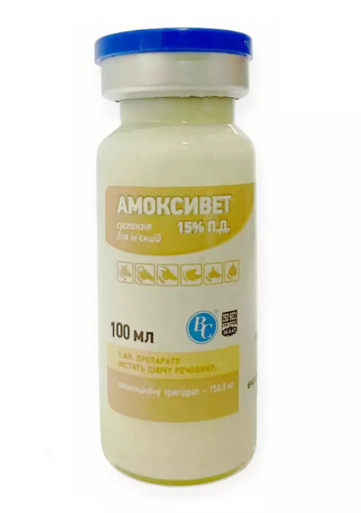 Амоксивет 15% П.Д.суспензія для ін'єкцій 100 мл