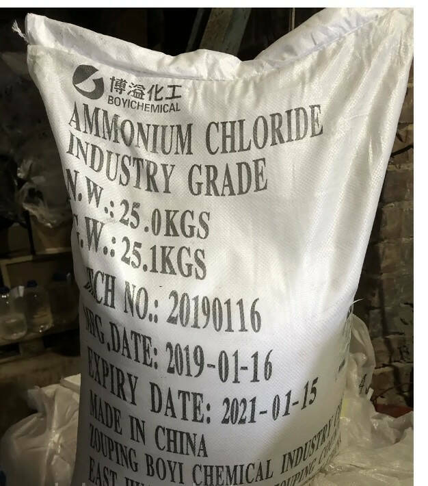В наявності Амоній хлористий Детальніше Застосовується для технічних цілей - при пайці металів, цинкуванні, лудженні, машинобудуванні, текстильній промисловості, для наповнення гальванічних елементів, кольорової металургії, лісової, деревообробної. Порошок білого або гранули білого кольору з жовтуватим або рожевим відтінком. Хлористий амоній мало гігроскопічний.
