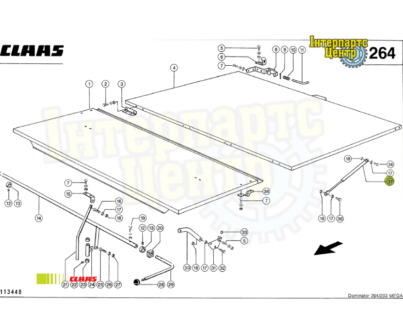 Амортизатор газовий (газовий упор) 400N зернового бункера комбайна, преспідбирача Claas.