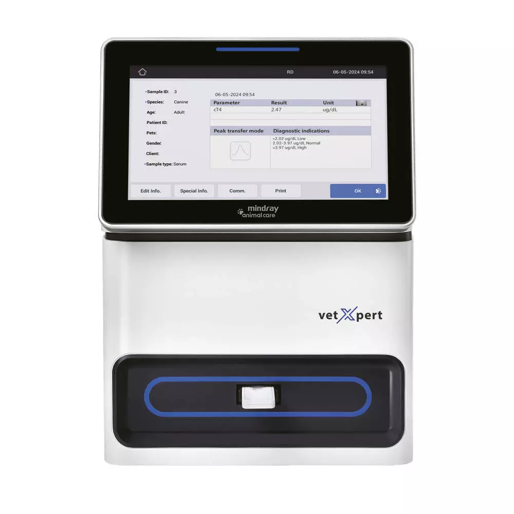 Робота ветеринарного імунологічного аналізатора vetXpert I3 базується на методології імунохроматографії та клінічно використовується для кількісного або напівкількісного виявлення аналітів у рідинах організму тварин (таких як цільна кров, сироватка, плазма, попередньо оброблені виділення з очей, носа та горла, фекалії тощо), включаючи антигени, антитіла, гормони, ферменти та інфекційні захворювання.