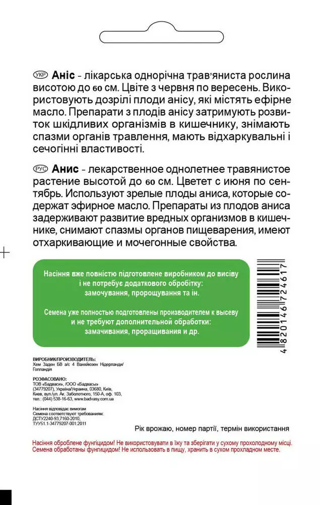 Аніс 0,5 г, Садиба Центр