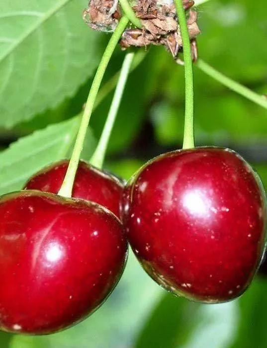 Аннушка – среднеранний гибрид черешни, который был выведен стараниями одного из лучших украинских селекционеров (Тараненко). Этот крупноплодный морозоустойчивый сорт вполне способен конкурировать с самыми известными в мире сортами черешни. Черешня Аннушка считается сильнорослым сортом: дерево может достигать в высоту 4-5 м. Все побеги крепкие и прямые. Тем не менее в процессе роста черешни формируется крона практически идеальной круглой формы. Листья у дерева также крупные, отличаются ярким темно-зеленым окрасом и вытянутой формой. В период цветения дерево покрывается нежными белыми 5-лепестковыми бутонами, объединенными по несколько штук в зонтичные соцветия. Плоды сорта довольно крупные (вес одного составляет 10 г), имеют округлую, немного приплюснутую у плодоножки форму. Окрас черешни насыщенный темно-красный. Внутри мякоть также красного цвета, достаточно плотная, сочная, хрустящая. Вкусовые качества плодов отменные.
