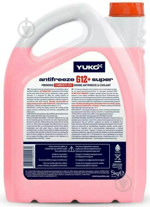 Характеристики Антифриз YUKO -32 Super G12+ 5 кг червоний
