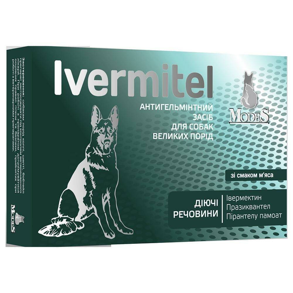 Антигельмінтний засіб Ivermitel (Івермітел) для собак великих порід зі смаком м’яса №12 таблеток по 0.8 г, Modes