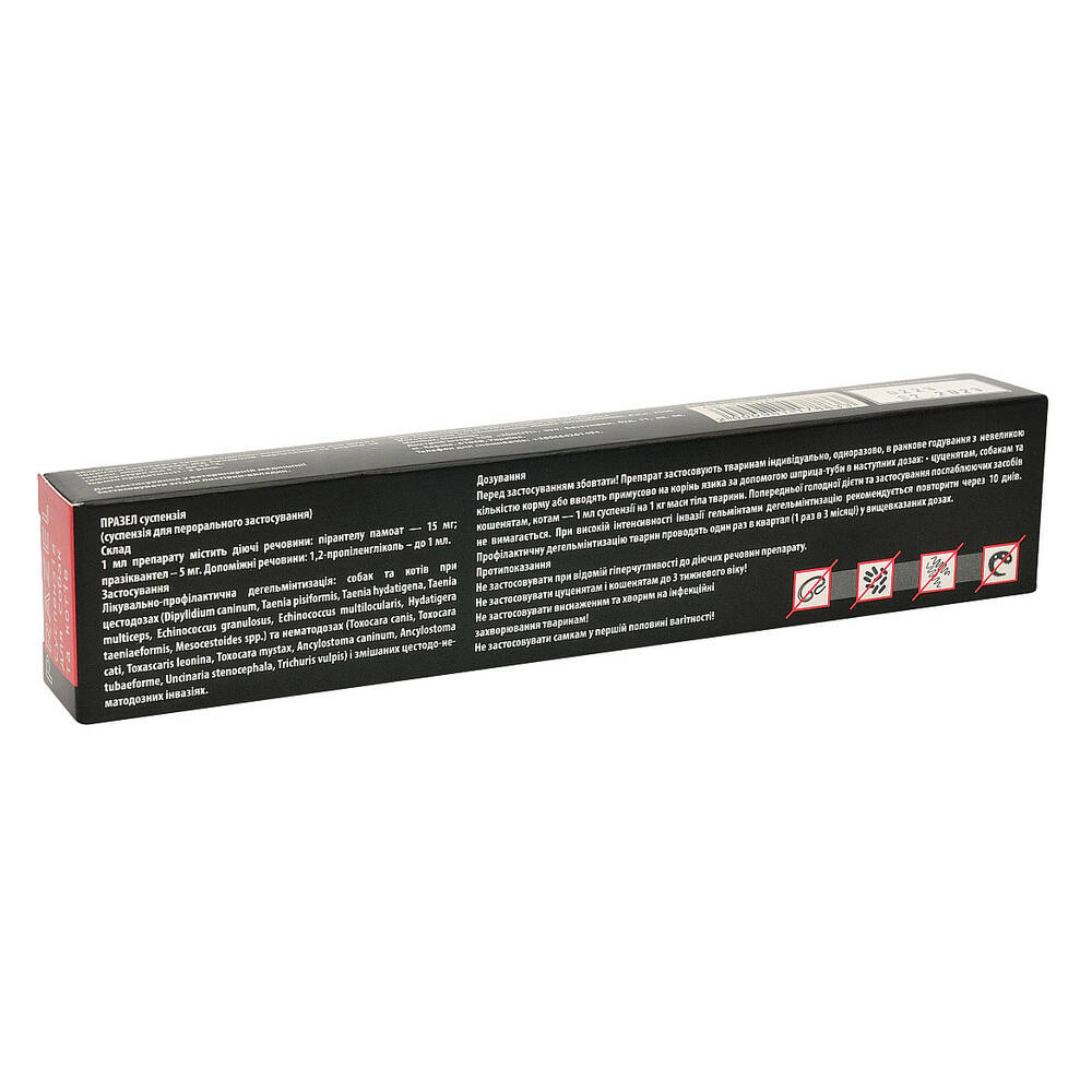 Антигельмінтний препарат суспензія Празел, ефективний проти стьожкових та круглих гельмінтів, містить діючі речовини: празиквантел та пірантелу памоат.