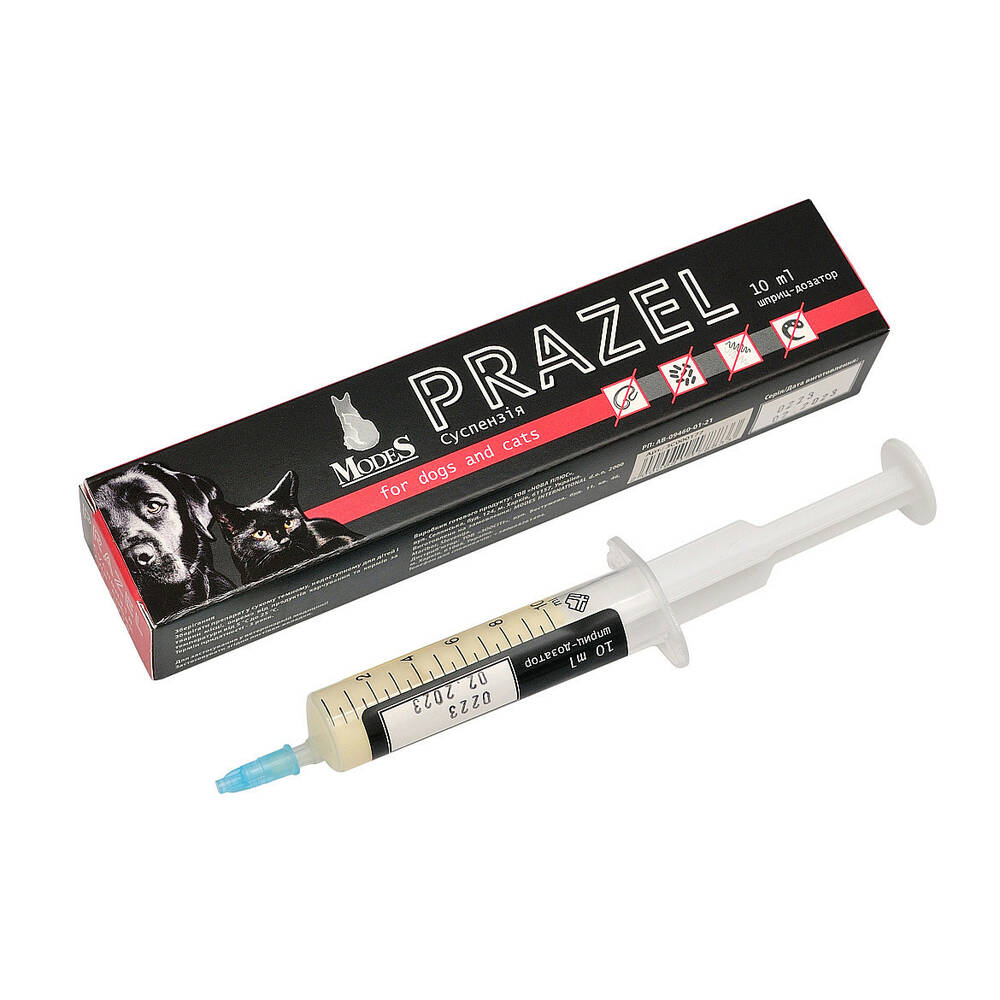 Антигельмінтний засіб Modes Prazel Модес Празел протипаразитарна суспензія для собак і котів, 10 мл
