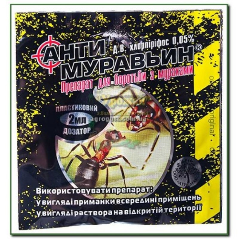 Препарат для боротьби з чорними садовими і рудими домашніми мурахами на доріжках, терасах і верандах будинків, у підсобних приміщеннях і на території навколо них.