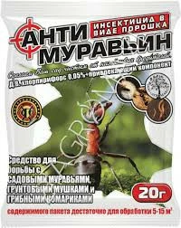 Препарат для боротьби з чорними садовими та рудими домашніми мурахами на доріжках, терасах та верандах будинків, у підсобних приміщеннях та на території навколо них.