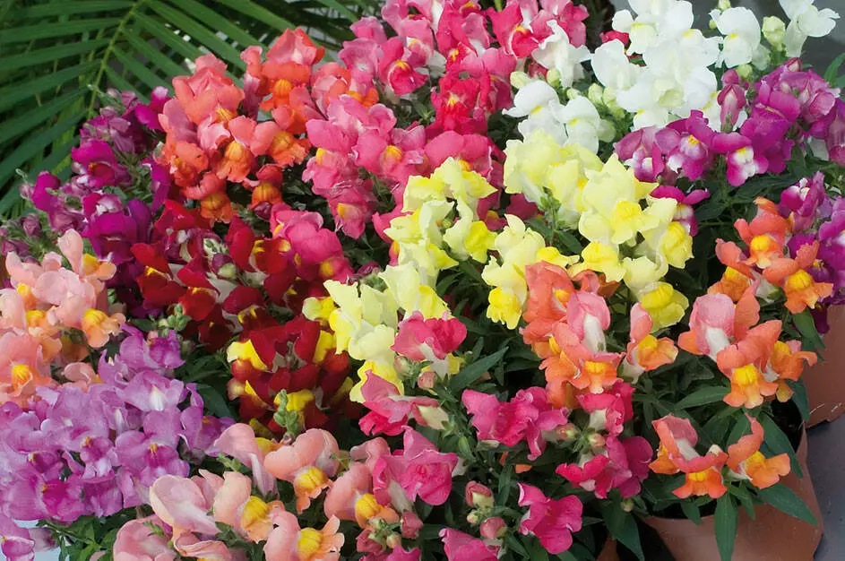 Антірінум Снеппі F1, суміш – однорічний антірінум з дуже компактним кущиком, порівняно з іншими видами. Його висота - 20-25 см, ширина - 15-20 см. Квітки дрібні, напівмахрові, зібрані в суцвіття висотою 8 - 10 см. Насіння на розсаду висівають в середині березня під плівку або скло в горщики. Загартовану розсаду висаджують у другій декаді травня на відстані 15 - 50 см. Цвітіння починається рано і триває з червня до заморозків. Усі квітки зацвітають майже одночасно. Рослина невибаглива, світлолюбна, стійка до ранніх осінніх заморозків. Використовують як незамінну рослину для прикраси балконів, клумб, садових вазонів, для оформлення бордюрів і переднього плану квітників. Поєднують з низькорослими айстрами, петунією, чорнобривцями, сальвією.