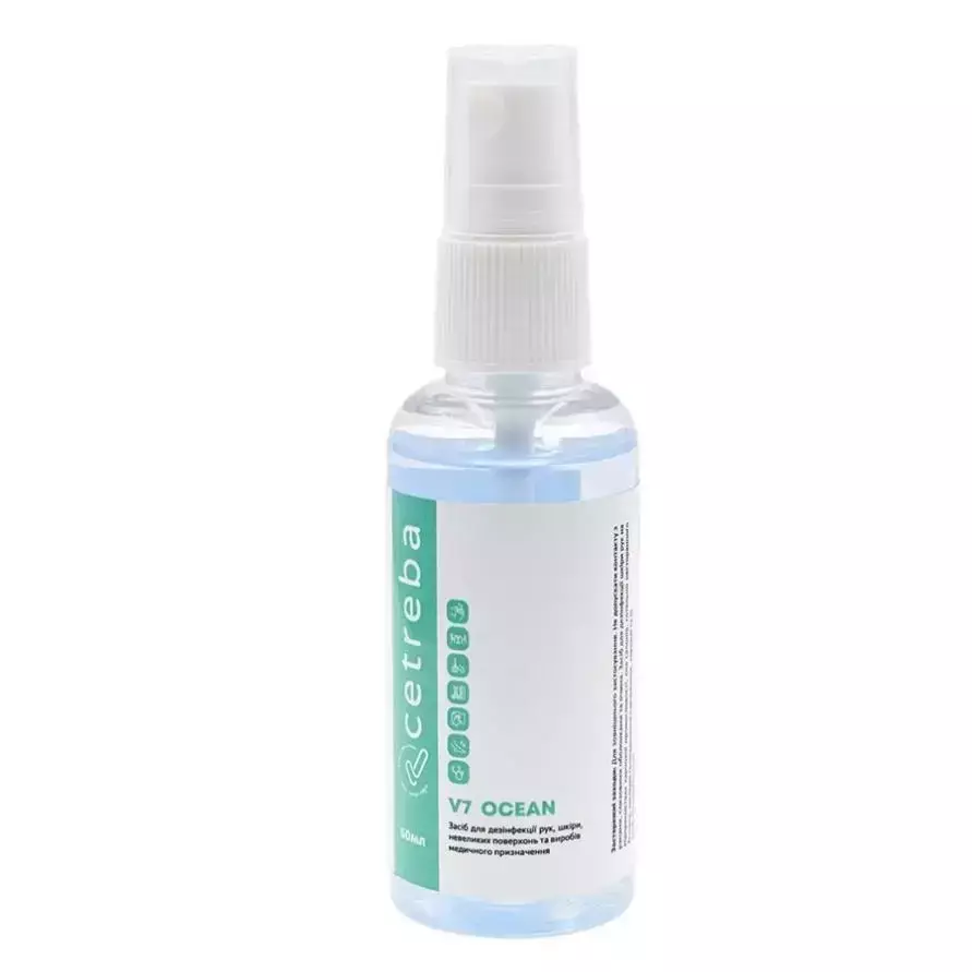 Засіб V7 для дезінфекції рук, шкіри, невеликих поверхонь та виробів медичного призначення.