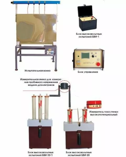 • визначення пробивної напруги рідких діелектриків напругою частотою 50 Гц до 50 кВ (по ГОСТ 6581-75). Вимірювання струмів витоку випробовуваних об'єктів (захисних засобів, розрядників і т.д.)