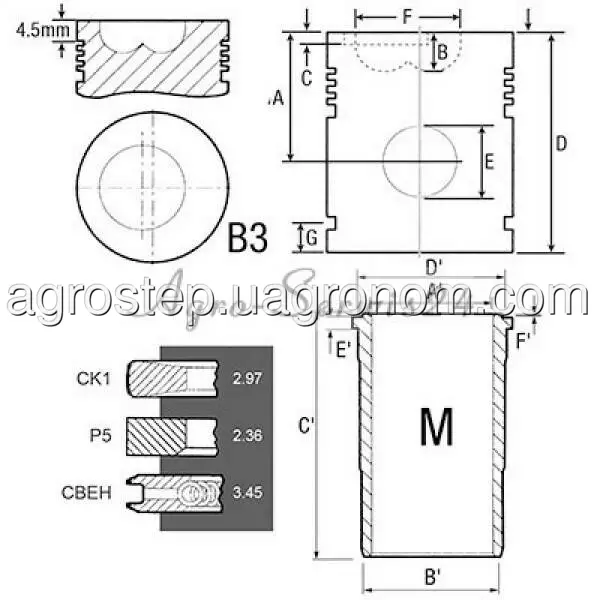 AR89753 / RE24458 Ремкомплект поршневий Джон Дір 106,5 mm AR89753, AR90551, RE11509, RE11510, RE18694, RE18697, 31-51 manufacturer