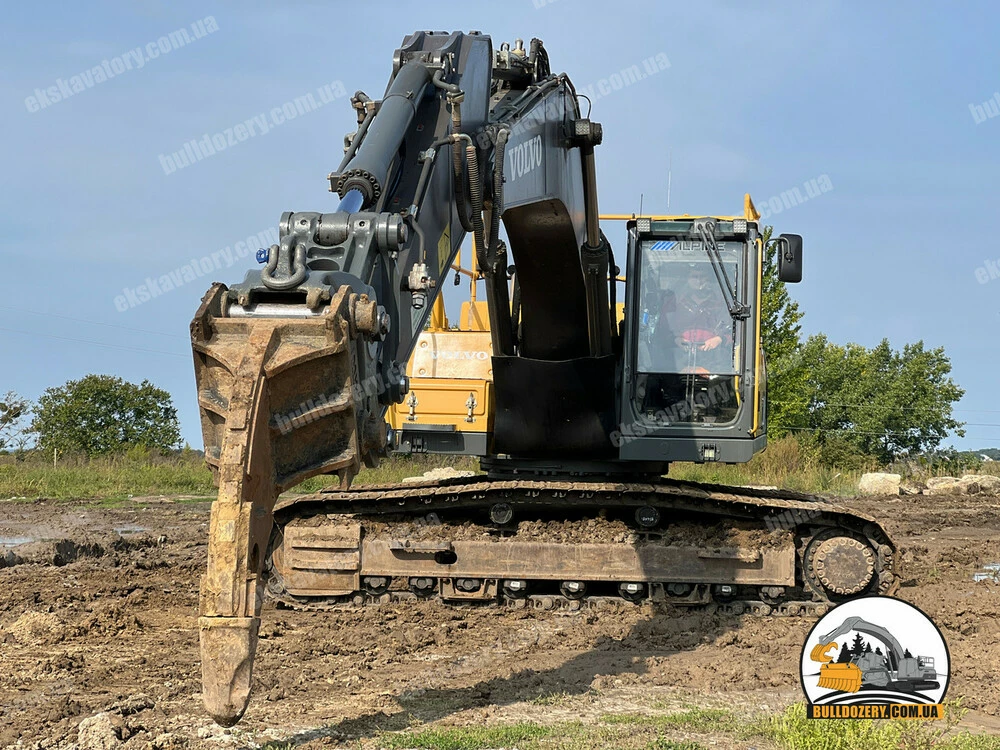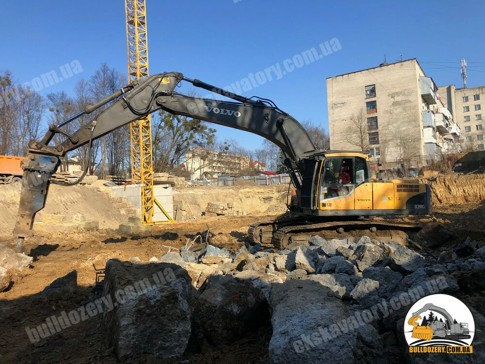 Технічні характеристики нашого екскаватора: вага 30 т, ківш 2,0 куб, гідравлічний молот 2 т, сила удару : 5000 Joule