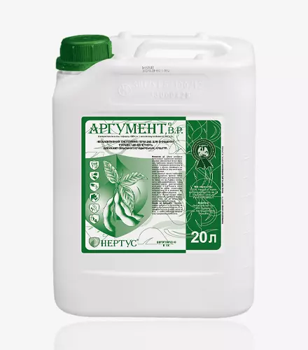 Назва товару: Аргумент Опис: Аргумент — це неселективний гербіцид системної дії, призначений для знищення однорічних та багаторічних злакових та дводольних бур'янів. Цей препарат також ефективно використовується як десикант для сільськогосподарських культур, сприяючи своєчасному та ефективному збиранню врожаю. Механізм дії: Дієва речовина Аргументу проникає через надземну частину рослини, розноситься по всіх її органах, порушуючи процеси білкового синтезу. Це блокує фотосинтез та дихання у рослин, що призводить до їхньої загибелі, включаючи кореневу систему. Переваги: - Аргумент ефективно бореться як з однорічними, так і з багаторічними бур’янами, зберігаючи вологу та забезпечуючи дружні сходи культур. - Його системне застосування зменшує загальну забур’яненість поля та мінімізує необхідність механічних обробок ґрунту. - Застосування гербіциду як десиканта сприяє прискоренню процесу збирання врожаю, зменшенню втрат і заощадженню палива. Особливості застосування: - Оптимальна фаза розвитку бур’янів для обробки: багаторічні злакові — 4-5 листків, багаторічні дводольні — розетка 10-20 см, однорічні злакові та дводольні — 2-3 справжніх листки. - Найкраща температура повітря для обробки — +15...+20°C. Застосування препарату при екстремальних температурах може знизити його ефективність. - Дощ протягом 5 годин після внесення може також зменшити ефективність дії препарату. - Норма робочого розчину — 200-250 л/га.