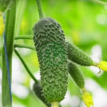 Плоди циліндричної форми, вирівняні, однорідні, без внутрішніх порожнин. Шкірка щільна з темними шипами, зеленого кольору, без жовтих смуг. Довжина зелень — 10-11 см, діаметр — 3-3,5 см, вага — 110-120 г.