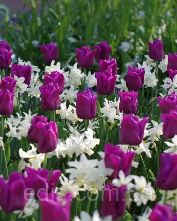 Дозвольте запропонувати Вам прекрасний пурпурово-білий мікс для весняної клумби з луковичних квітів під назвою Імператор.