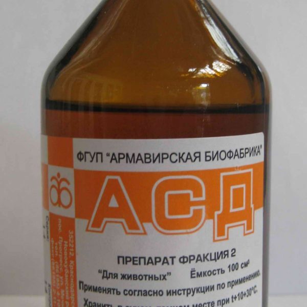 Препарат АСД фракцию 2 назначают сельскохозяйственным животным (в том числе птице) и собакам, с лечебной и профилактической целью при болезнях желудочно-кишечного тракта, органов дыхания, мочеполовой системы, поражениях кожных покровов, нарушениях обмена веществ, для стимуляции деятельности центральной и вегетативной нервной системы, повышения естественной резистентности у ослабленных и переболевших инфекционными и инвазионными болезнями животных, а также для стимуляции роста и развития поросят, цыплят и повышения яйценоскости кур.