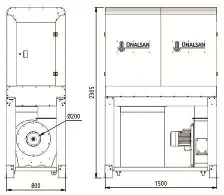 Корпус аспирационной установки полностью закрыт металлическим кожухом, где все стыки листового металла герметизированы силиконом. Это позволяет использовать установку не только внутри цеха, но и на улице. При наружной установке аспирации, в верху кожуха есть технологические отверстия для подсоединения воздуховодов, для возврата отфильтрованного теплого воздуха назад в производственный цех.