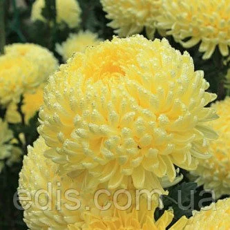 Астра Ксантіпа – сорт карликової айстри з махровими пионовидными сонячно-жовтими квітками.