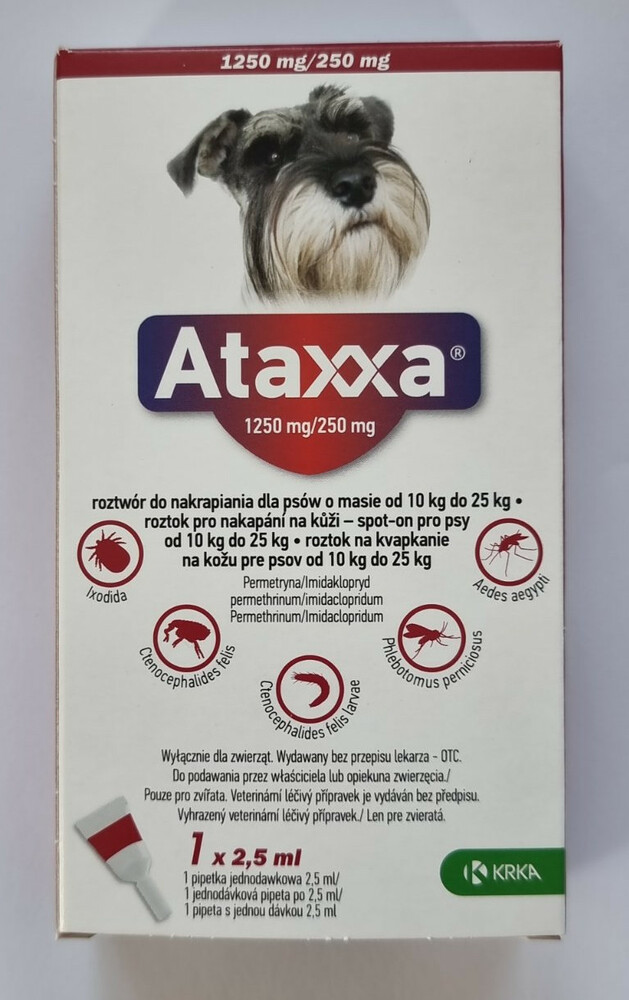 Атакса (Ataxxa) краплі для собак від 10 до 25 кг проти бліх, кліщів, вошей, волосоїдів (2,5 мл 1 піпетка) KRKA