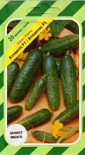 Атлантіс F1 - ранній гібрид огіркапереважно жіночого типу цвітіння, плоди однорідні, темно-зеленого кольору, без гіркоти, довжиною 10-12см, хороше співвідношення між довжиною та товщиною, робить цей гібрид ідеальним для засолювання і консервування