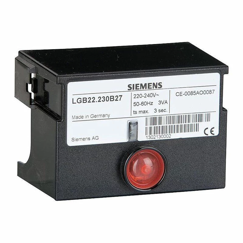 Автомат горения Siemens LGB22.230 B27 применяется для запуска и контроля одно- и двухступенчатых газовых или комбинированных газовых/жидкотопливных горелок при периодической работе. Подходит для горелочных устройств малой или средней мощности с вентилятором или без вентилятора.