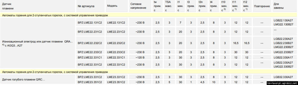 | Автоматы горения LME 22.232C2 заменяет | -LGB22.230A27 LMG22.230B27 LME22.232A2 |
