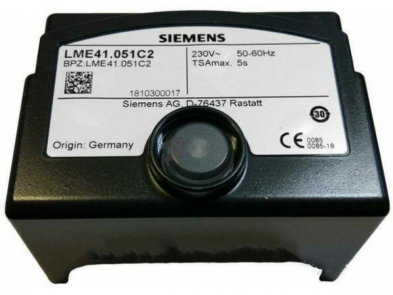 Газовый автомат горения LME41.051C2 для контроля 1- или 2-ступенчатых газовых горелок малой и средней мощности с прерывистым режимом работы.