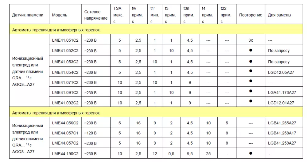 LME41.051C2 - Автомат горения, 1-ступенчатая, ионная / QRA, tw ∼ 2,5 с, t1' ∼ 1 с, TSA ∼ 5 с, t3n ∼ 4 с, t3 ∼ 1 c