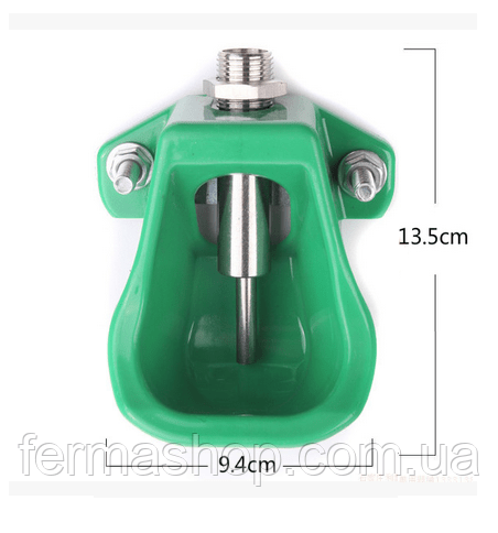 Чашечная поилка для свиней устанавливается к стене или клетке с переходом на опуск и через шланг к водопроводу.