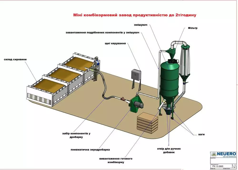 Міні комбікормовий завод продуктивність до 2т/год Neuero