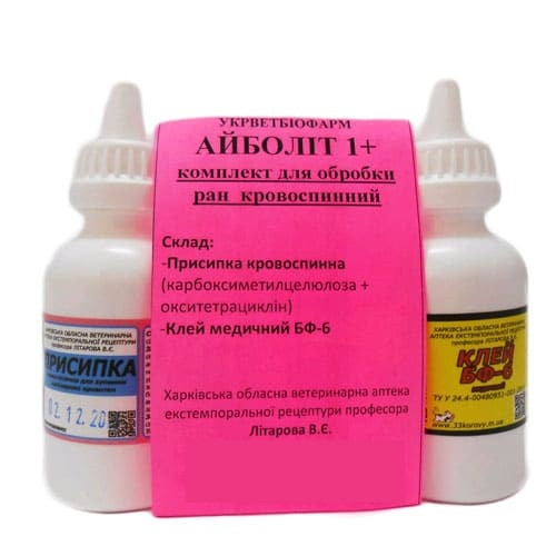 Айболить 1+ (присипка гемостатична 50г' клей бф-6 50 г) Укрветбиофарм