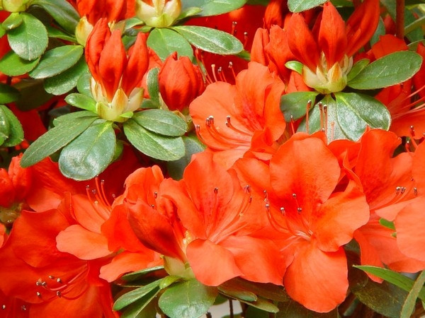 Опис. Азалія японська Гейша Оранж - компактна форма рододендрона, напіввічнозелений чагарник.