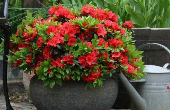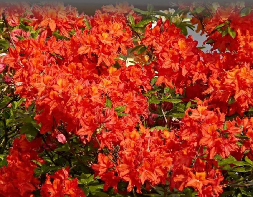 Опис. Азалія японська Гейша Оранж - компактна форма рододендрона, напіввічнозелений чагарник.