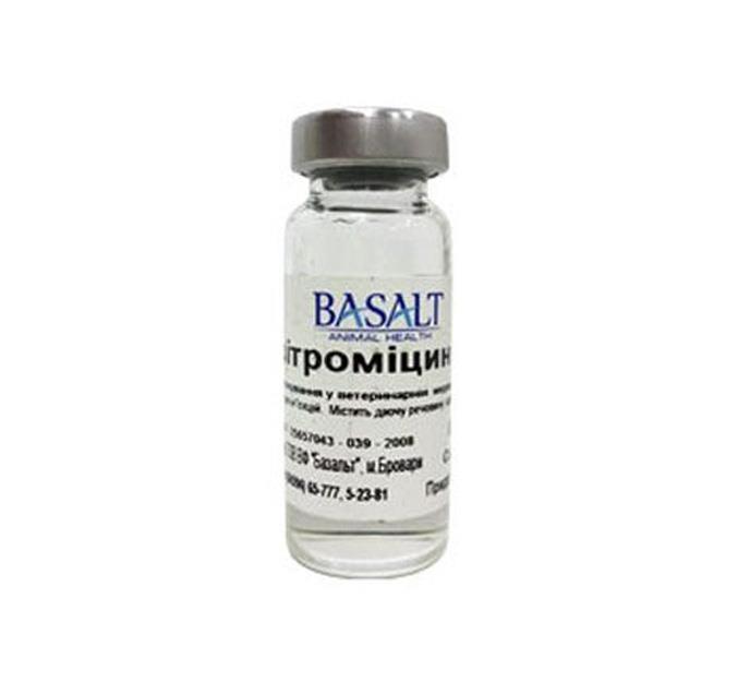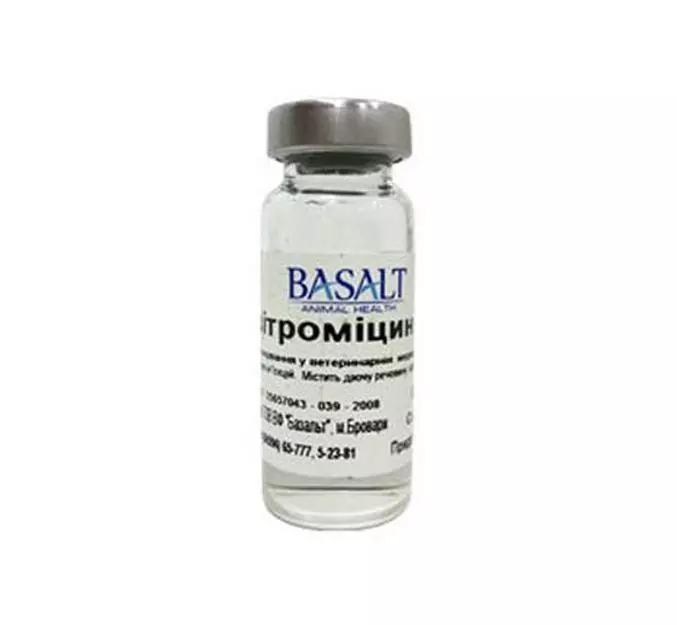 Показання до застосування: Азітроміцин застосовують великій та дрібній рогатій худобі, свиням, собакам та котам для лікування бактеріальних інфекцій органів дихання, травної та сечостатевої системи, інфекцій шкіри і м'яких тканин, що викликаються мікроорганізмами, чутливими до азитроміцину, для терапії некробактериоза, бешихи свиней, спірохетозу і мікоплазмових інфекцій.