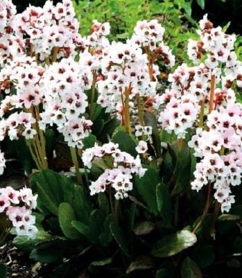 Вічнозелений сорт, що радує витонченістю суцвіть і пишними розетками орнаментальних листочків. Квіти напівмахрові, відкриваються майже білими, а потім починають повільно фарбуватися до світло-рожевого. Листя злегка довгасті, влітку глянцеві зелені, а до осені починають набирати червоність до темного винно-червоного кольору. Завдяки гарним листям зберігає привабливий вигляд навіть після закінчення цвітіння, весь вегетативний період. Добре розвивається на добре дренованих, зволожених грунтах. Є гарною прикрасою клумб, в поєднанні з невисокими багаторічниками і папороттю, по сусідству з низькорослими сортами садових квітів. Морозостійкий.
