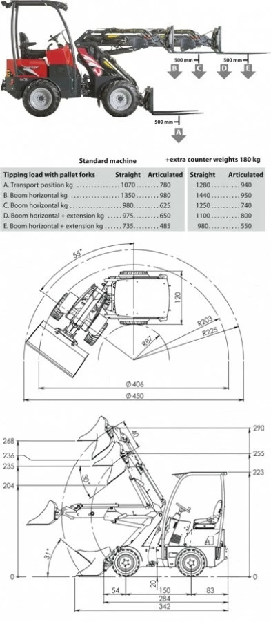 Навантажувач Norcar 755 є по суті універсальною робочою машиною. Стійка телескопічна стріла дозволяє легко та безпечно виконувати підйом вантажів. Висота підйому палетними вилами становить 2,8 м. Висуненням підйомної стріли та допоміжною гідравлікою легко і зручно керувати за допомогою джойстика з електричним вимикачем. Регульоване кермо і зручна підвіска сидіння знижують втому від поїздок. Система управління рухом з ножною педаллю акселератора та вибору напрямку дозволяє контролювати рух з приголомшливою точністю, навіть при вимогливому навісному обладнанні та складному рельєфі ґрунту. Norcar 755 є ефективним інструментом для робіт з чергуванням завантаження в кузов, згрібанням снігу та переміщенням грунту.
