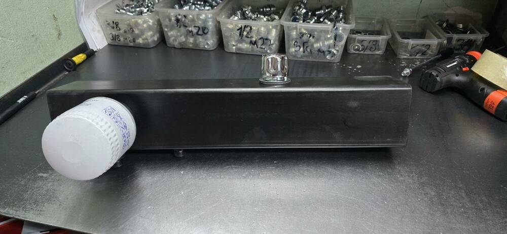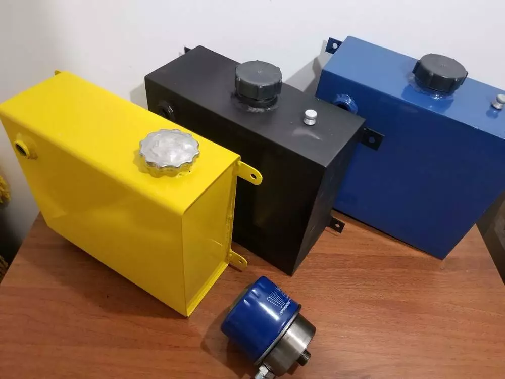 Наша компанія виробляє гідробаки для олії, цей гідромак об'ємом 15 літрів (з щупом для вимірювання оливи). Можливі варіації: - з фільтром — трохи дорожче; - без фільтра — трохи дешевше, а також можливо з імпортною італійською заливною горловиною — вартість бака орієнтовно дорожче на + 550 грн.