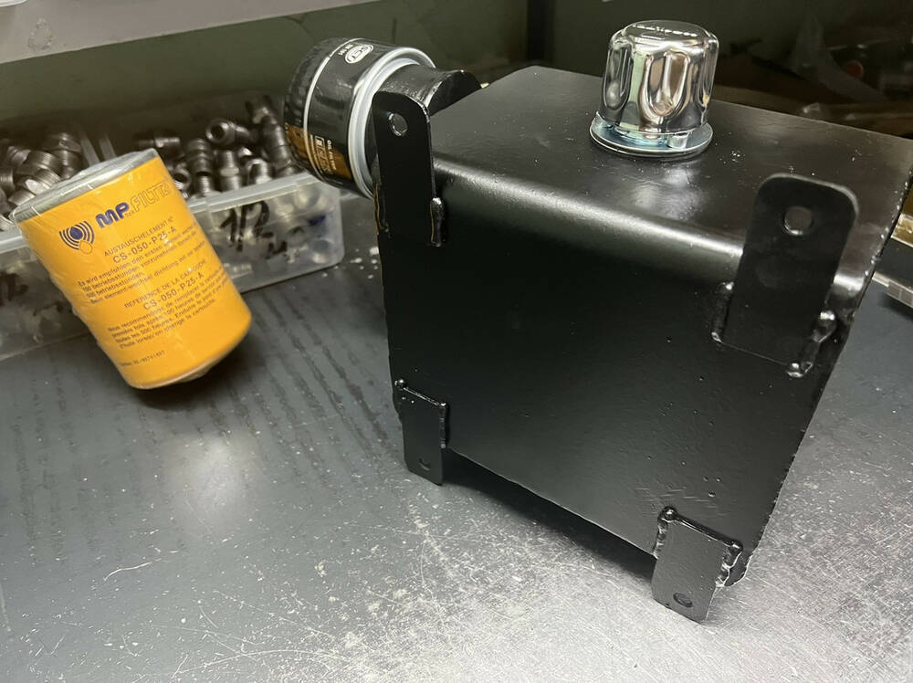 Наша компанія виробляє гідробаки для олії, цей гідромак об'ємом 3 літри (з щупом для вимірювання оливи). Можливі варіації: - з фільтром — трохи дорожче; - без фільтра — трохи дешевше, а також можливо з імпортною італійською заливною горловиною — вартість бака орієнтовно дорожче на + 550 грн.