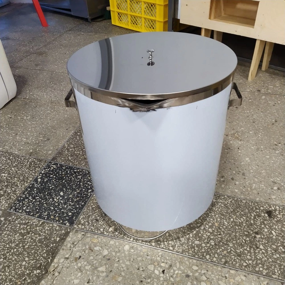 Бак для виварювання воску 60 л. Виготовлений з нержавіючої сталі марки AISI 430, завдяки своєму складу більш стійка до температурних навантажень. Нержавіюча сталь марки AISI 430 – на сьогоднішній день найбільш широко застосовувана корозійностійка феритної хромиста сталь загального призначення (у відповідності зі стандартом ASTM A240), в якій поєднуються: висока міцність і високі механічні властивості; висока корозійна стійкість, в тому числі атмосферна.