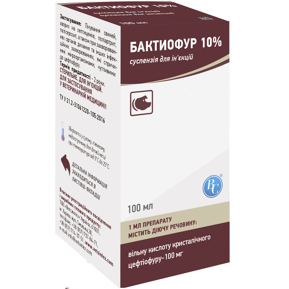 Бактиофур 10% антибіотик ін'єкційний для свиней, 100 мл