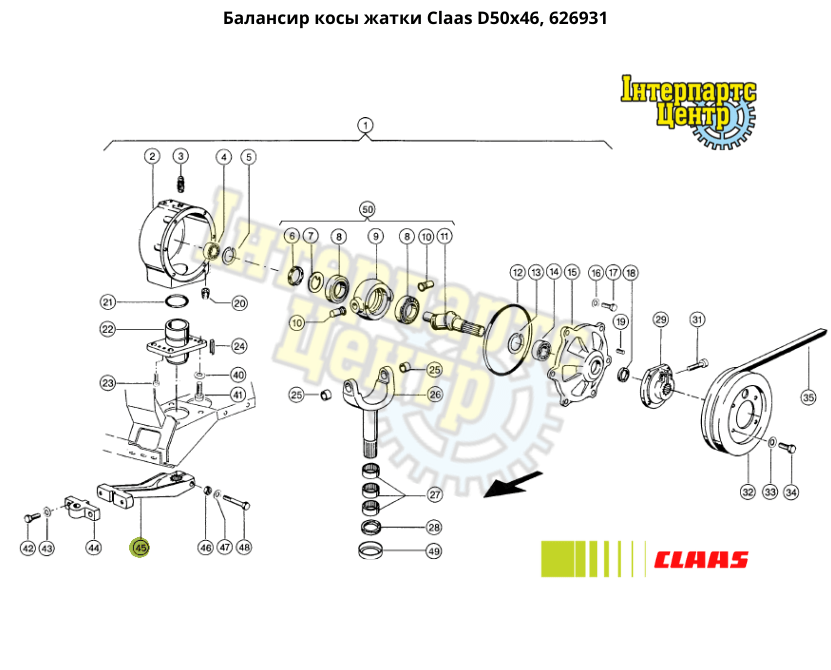 Балансир коси жниварки Claas D50x46, 626931, 000626931, 626931.0, 6269310, 0006269310